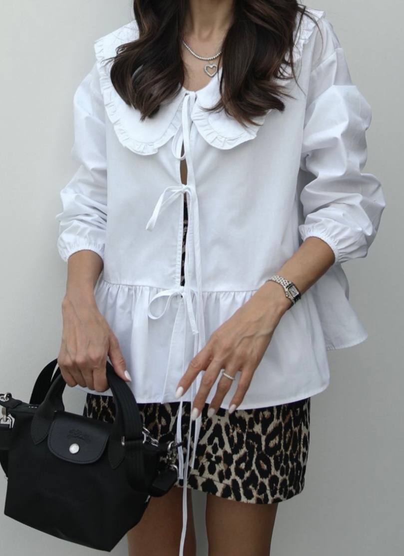 Balti marškinukai su kaklu ir raišteliais