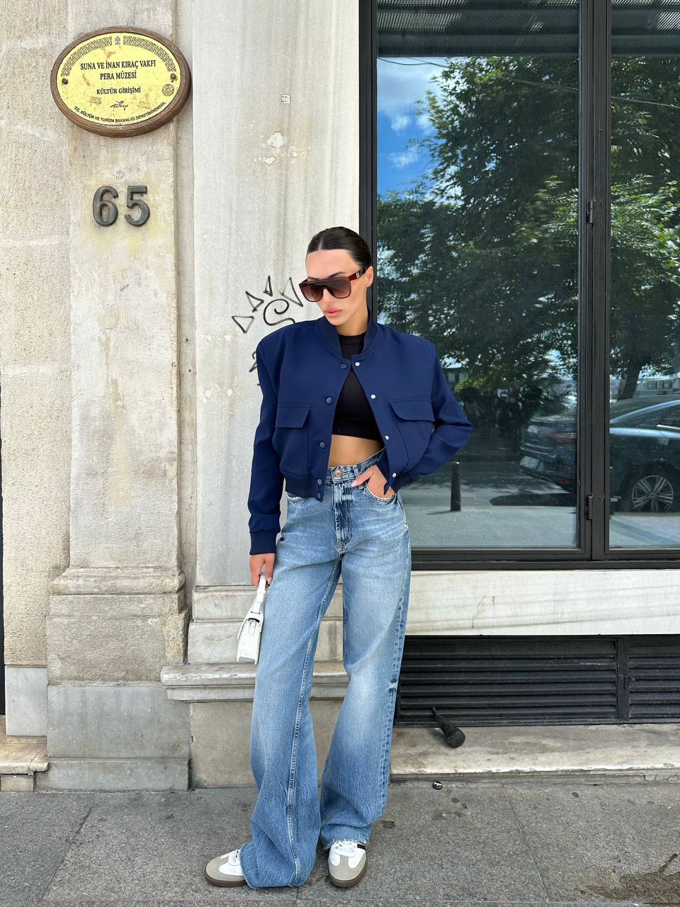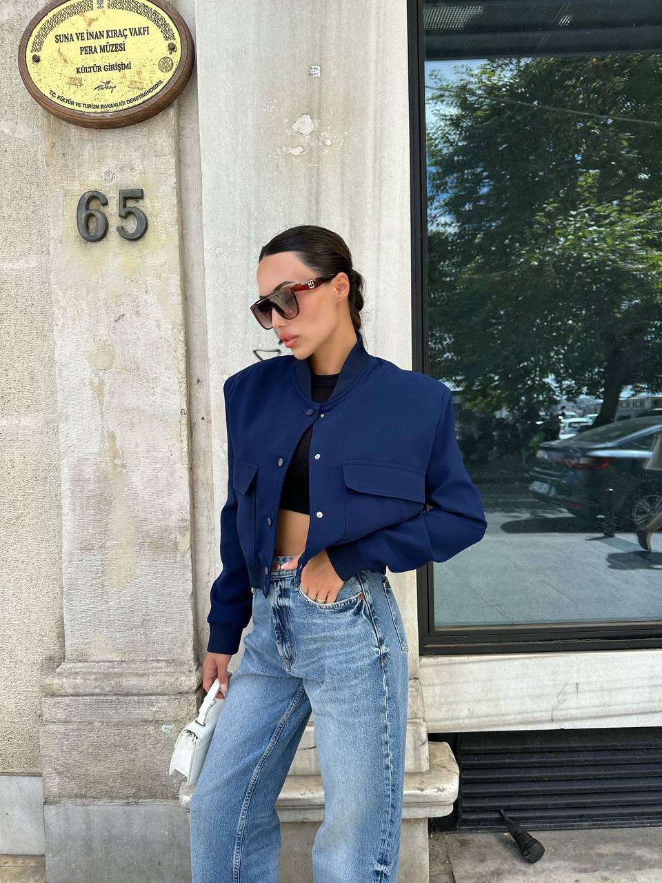 Su kniedėmis. Dydžius atitinka. Gali būti nešiojamas kaip švarkelis arba kaip plona striukytė.