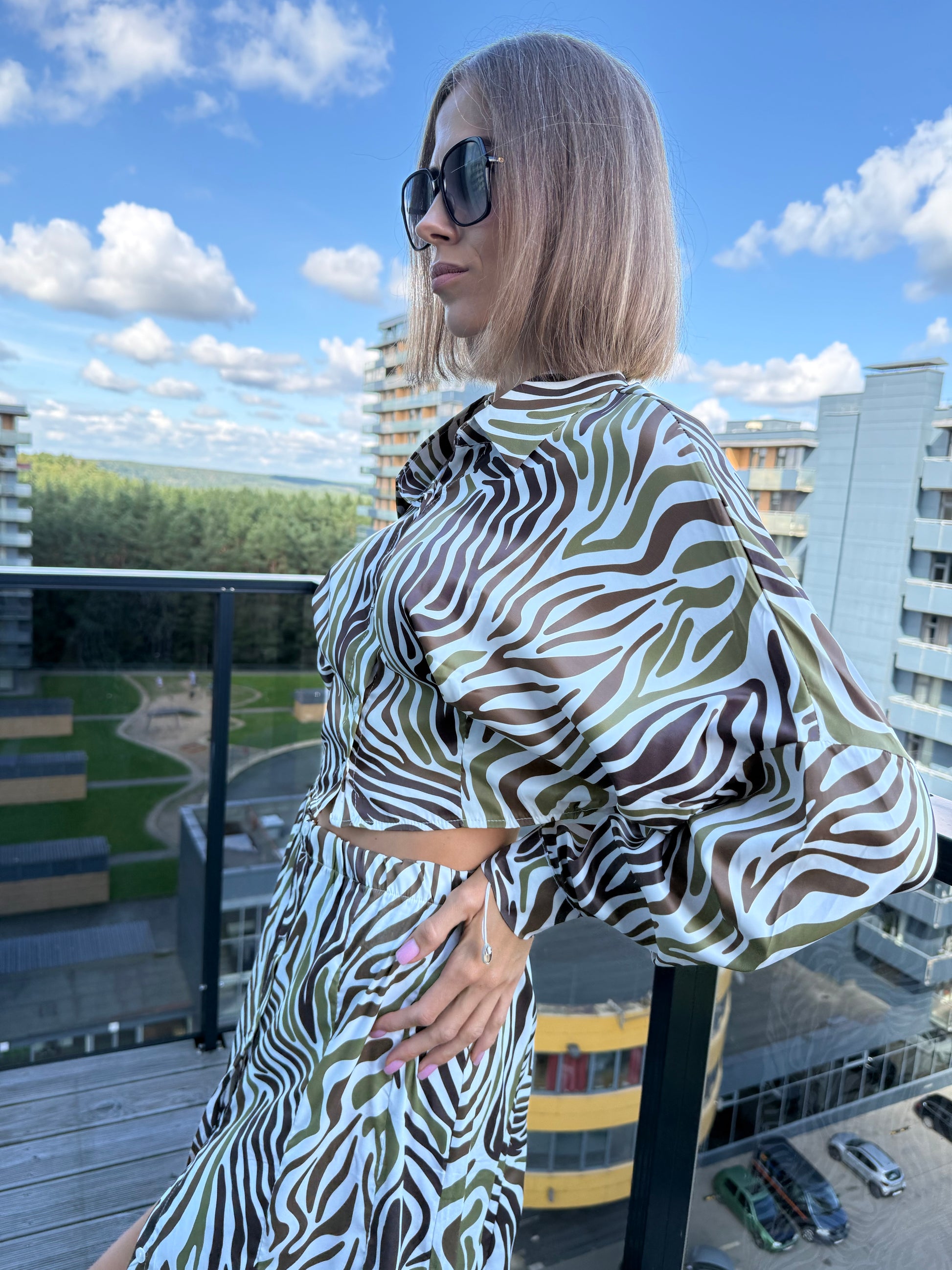 Dviejų dalių kostiumėlis iš malonios, dirbtinio šilko medžiagos. Medžiaga nėra labai plona, todėl gražiai krinta ir maloni prie kūno.