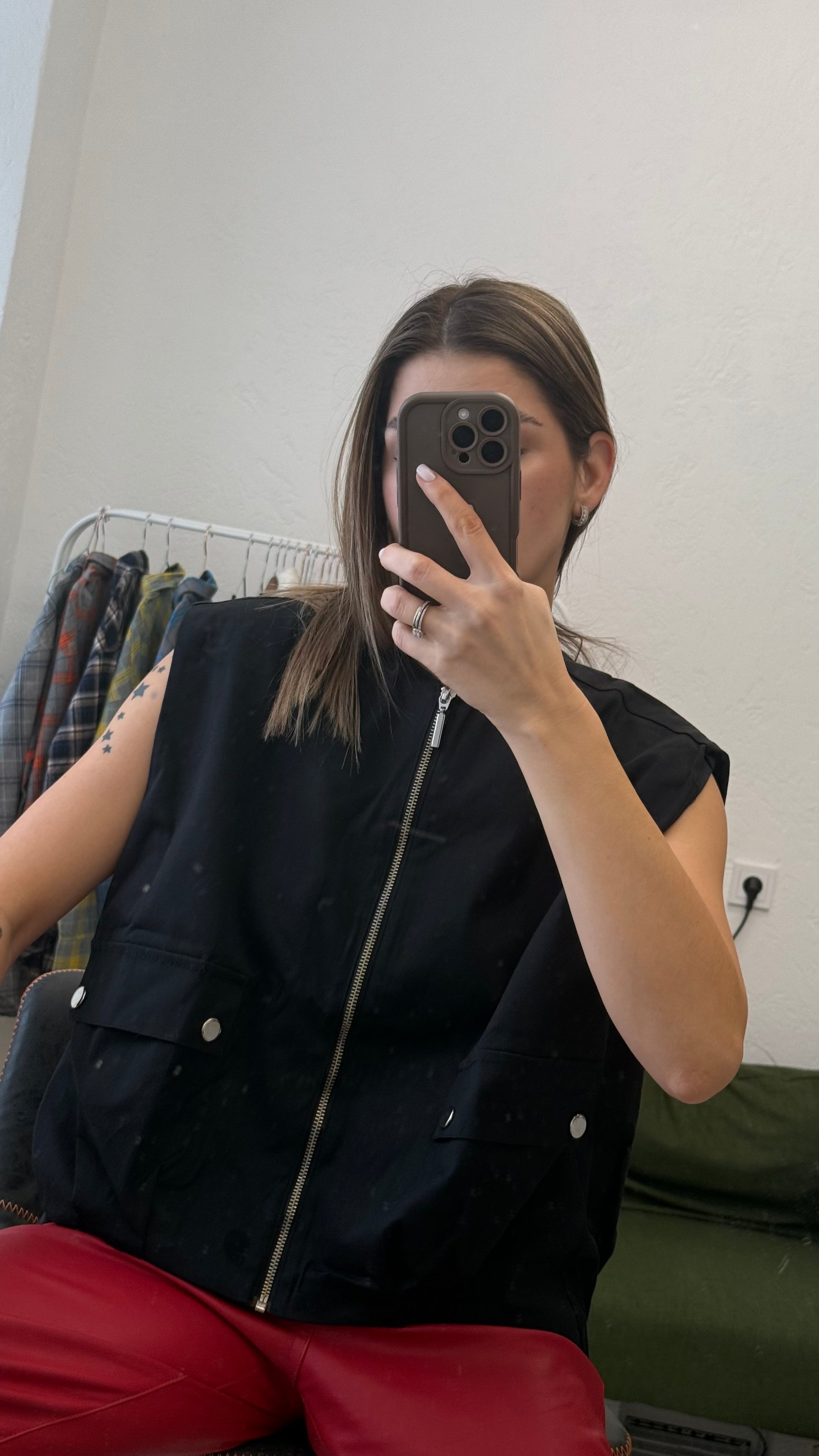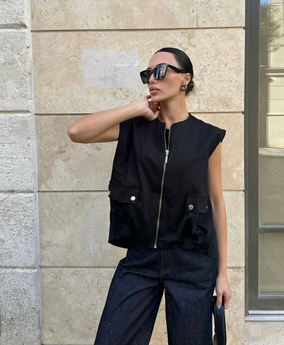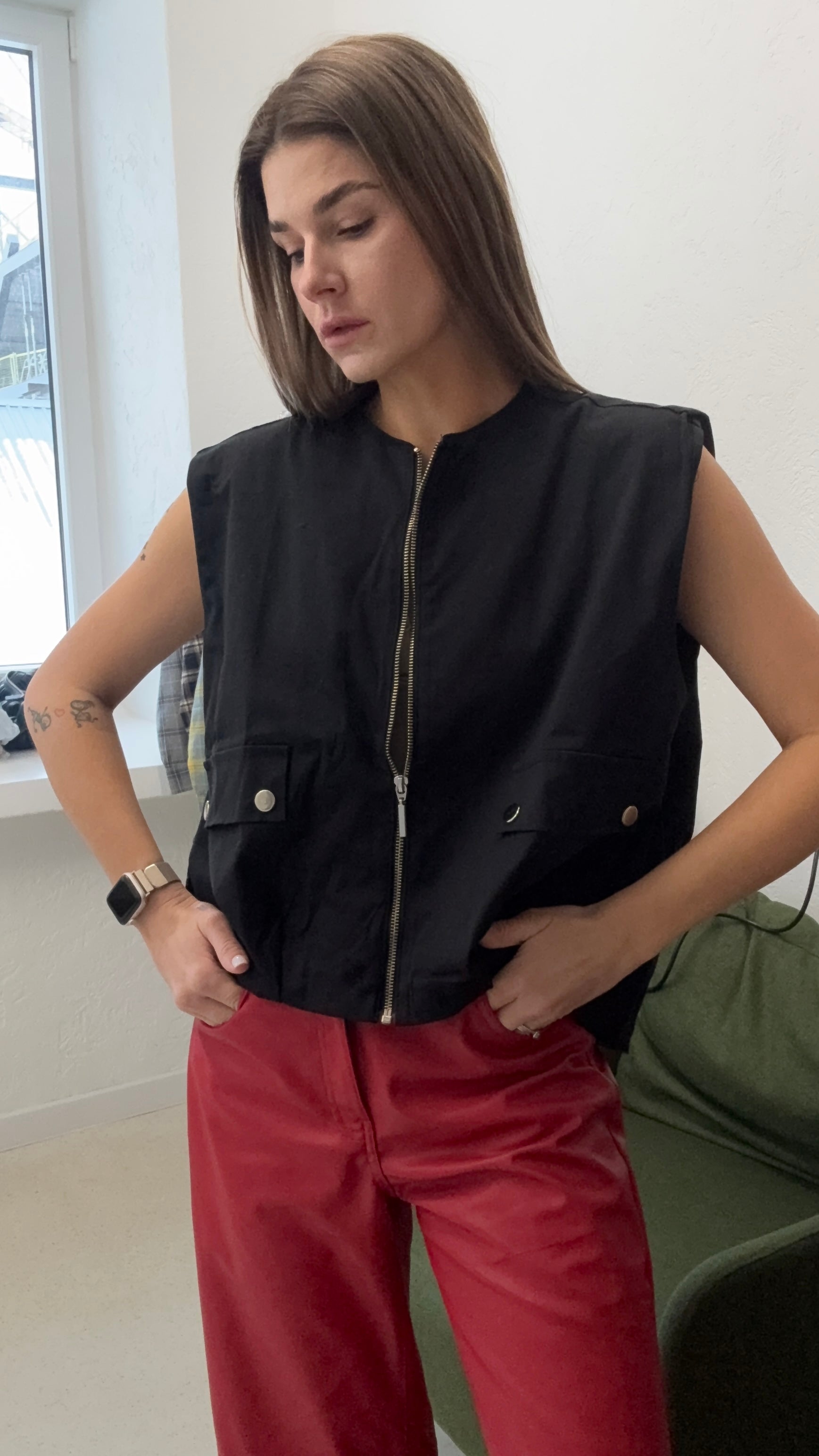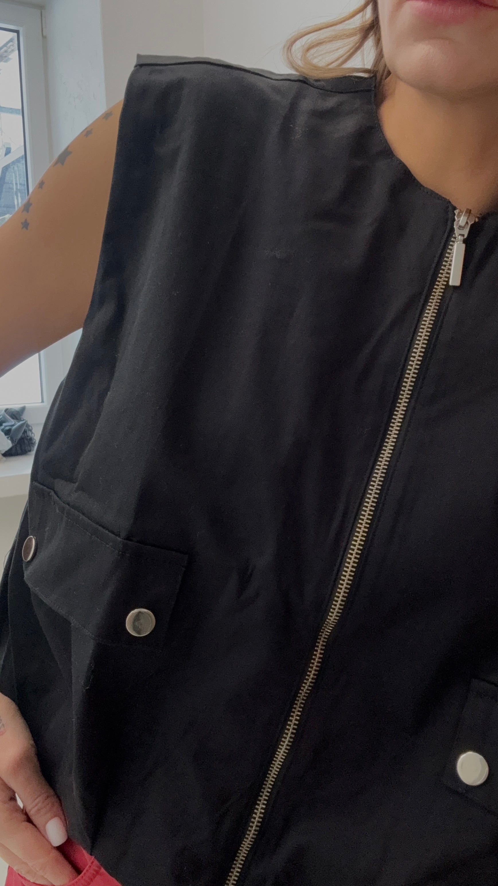 Kišenių imitacija su kniedėmis. Prailgintas galas. Liemenės oversize dydžio, tiks didesnei krutinei. Dydžiai atitinka. Jei nešiojate S - S ir imate, tik svarbu suprasti, kad jos bus didintos.