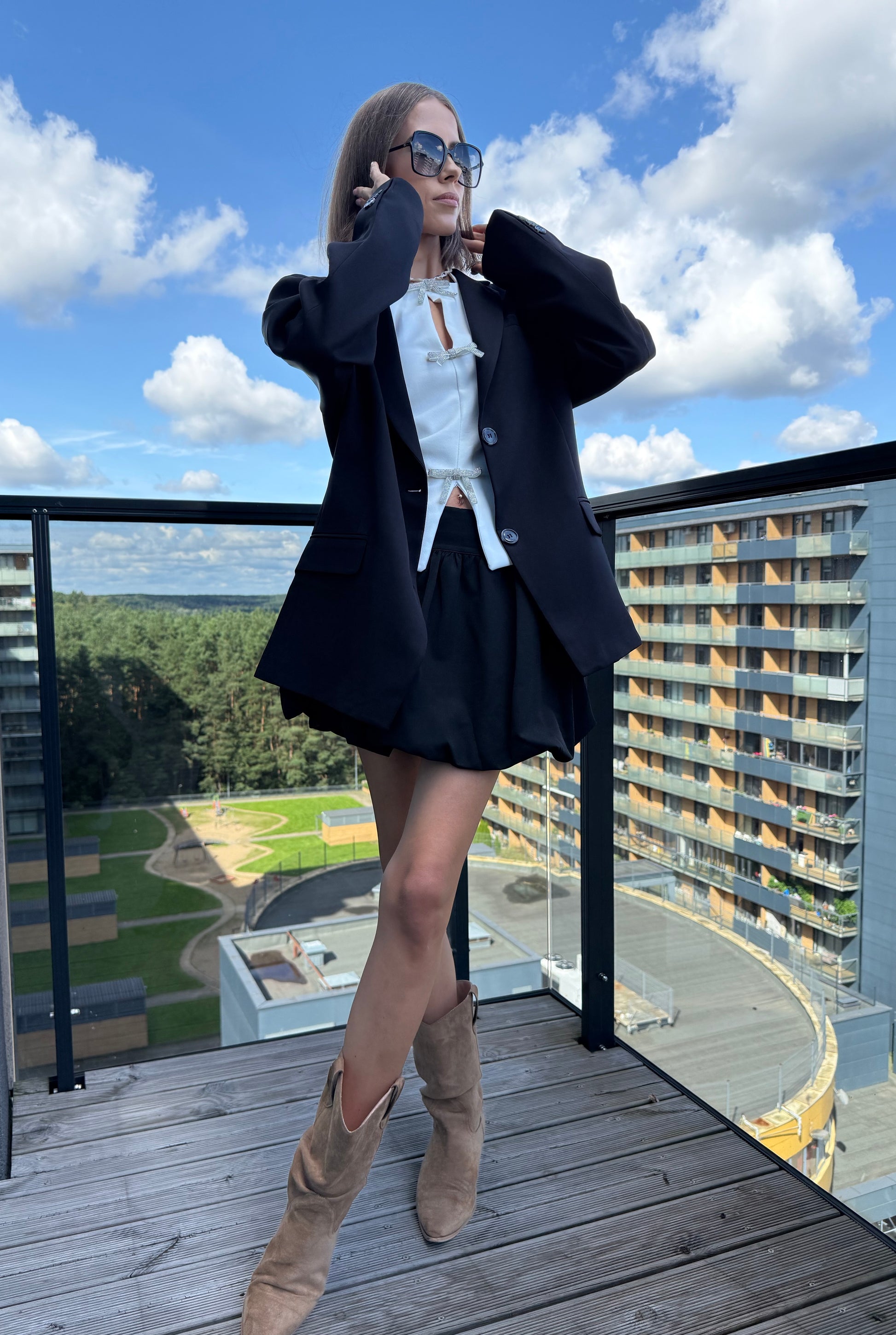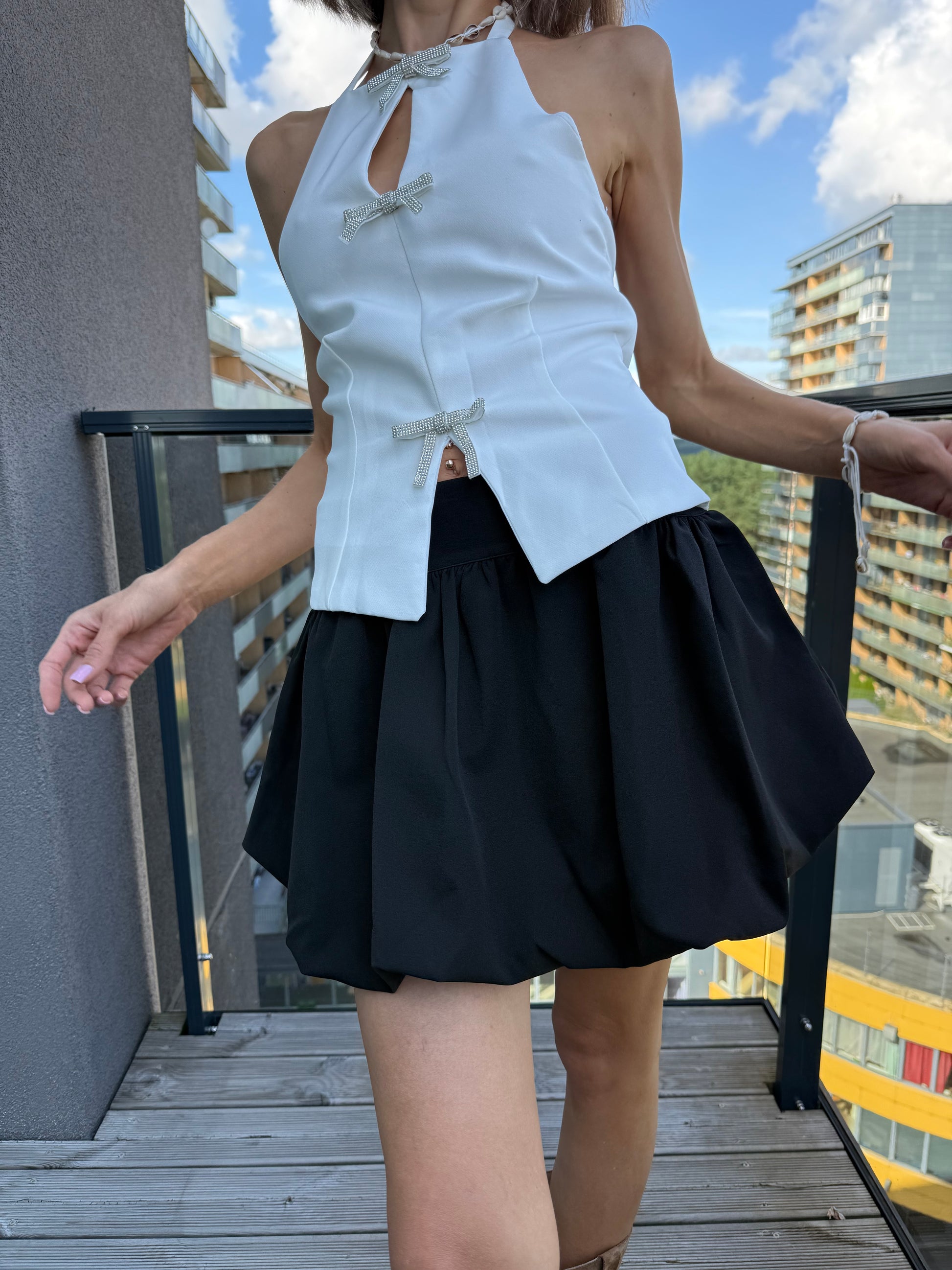 Mini sijonukas su apatiniais šortukais (skort). Šortukų visai nesimato, tačiau galima drąsiai judėti, nebijant, jog parodysime per daug.